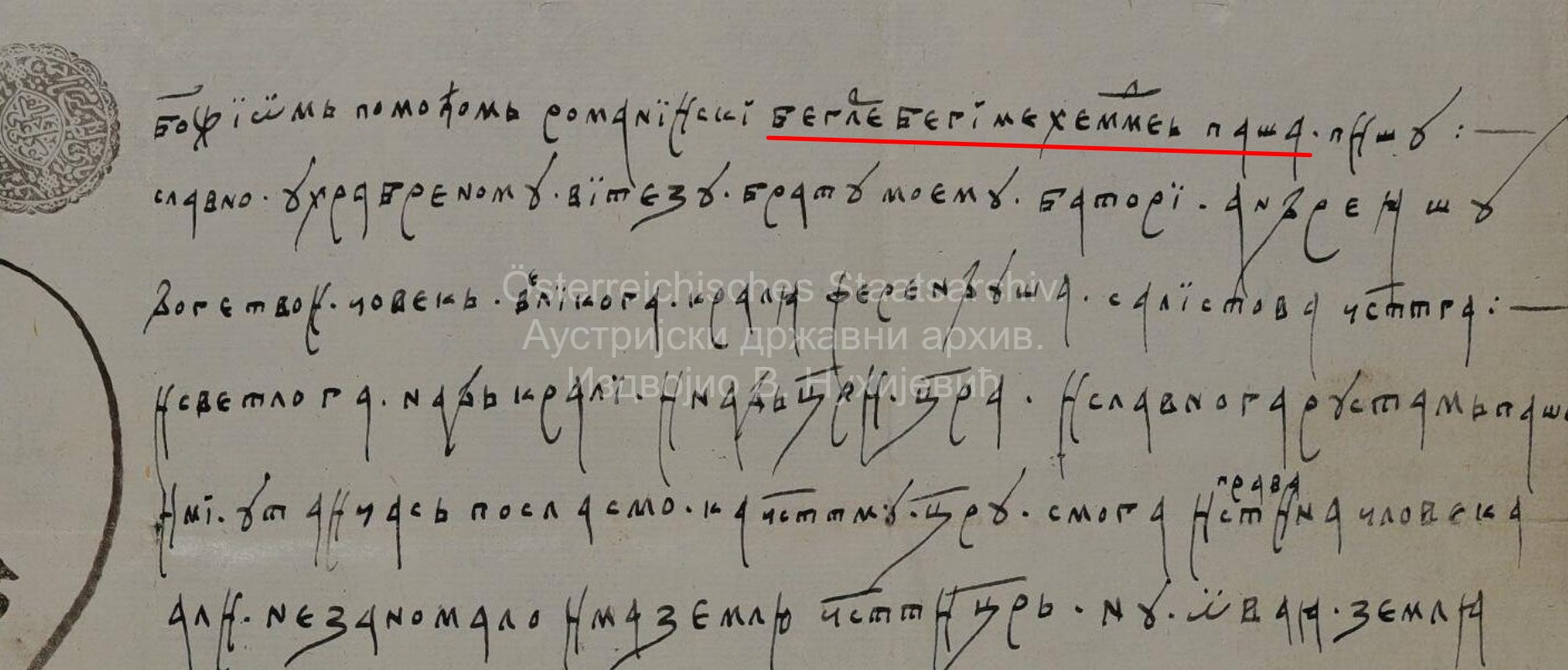 Писмо под називом „Писмо беглербега Мехмеда Андреасу Баторију у Темишвару“ (Schreiben von Beylerbeyi Mehmed an Andreas Bathory in Temeswar) се чува у аустријском државном архиву под ознаком „AT-OeStA/HHStA StAbt Türkei I 9-4-21“, а фотографија високе резолуције јавно је доступна и ја сам је без проблема преузео. Аустријски архиватори су за документ навели да је на српском језику и да је доступан и превод на латински. На жалост, фотографија латинског превода је лоше резолуције те се текст не може прочитати. Можда ћу неком приликом отићи до архива у Беч и потражити тај документ.